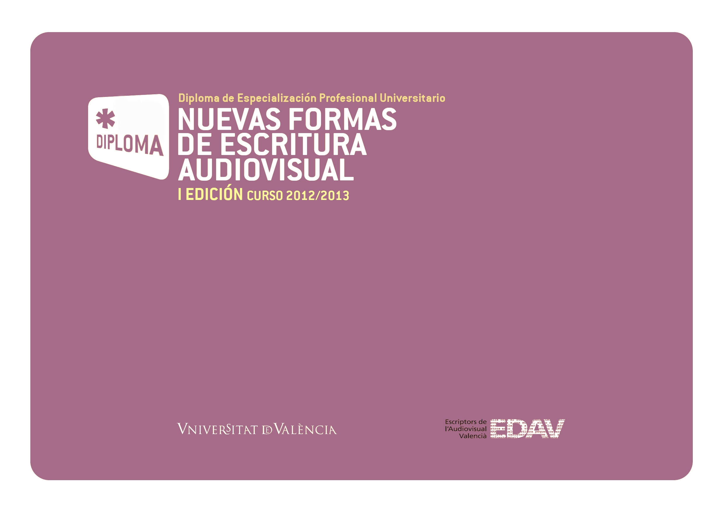 Escriptors de l’Audiovisual Valencià i la Universitat de València posen en marxa el Diploma d’Especialització Professional Universitari en Noves Formes d’Escriptura Audiovisual, el primer postgrau centrat en guió de la UV, dirigit a llicenciats i diplomats universitaris i a professionals del món del guió.